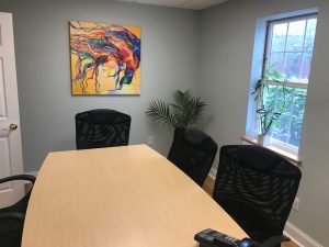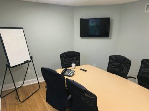 - Single Desk or Private Room (9′ x 16′) available with Two oversized desks, filing cabinets, and chairs